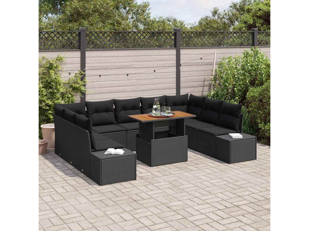 Multidom Záhradný jedálenský set s vankúšom 10 pcs Čierna a Hnedá