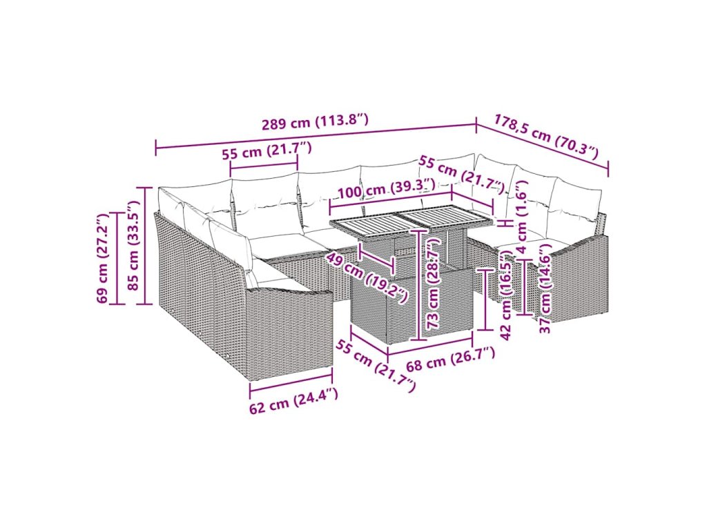 - Zahrnuté komponenty: Premyslene zahrnuté v sete sú armové pohovky a rohové sedadlá s úložnou funkciou. Tieto kusy ponúkajú praktické miesta na uskladnenie vankúšov, obrusov a ďalších nevyhnutností, zabezpečujúce, že zostanú suché a chránené, keď sa nepoužívajú. Kusy si zachovávajú čistý vzhľad, čo pridáva na všestrannosti setu.