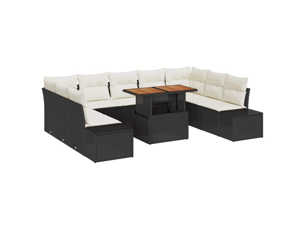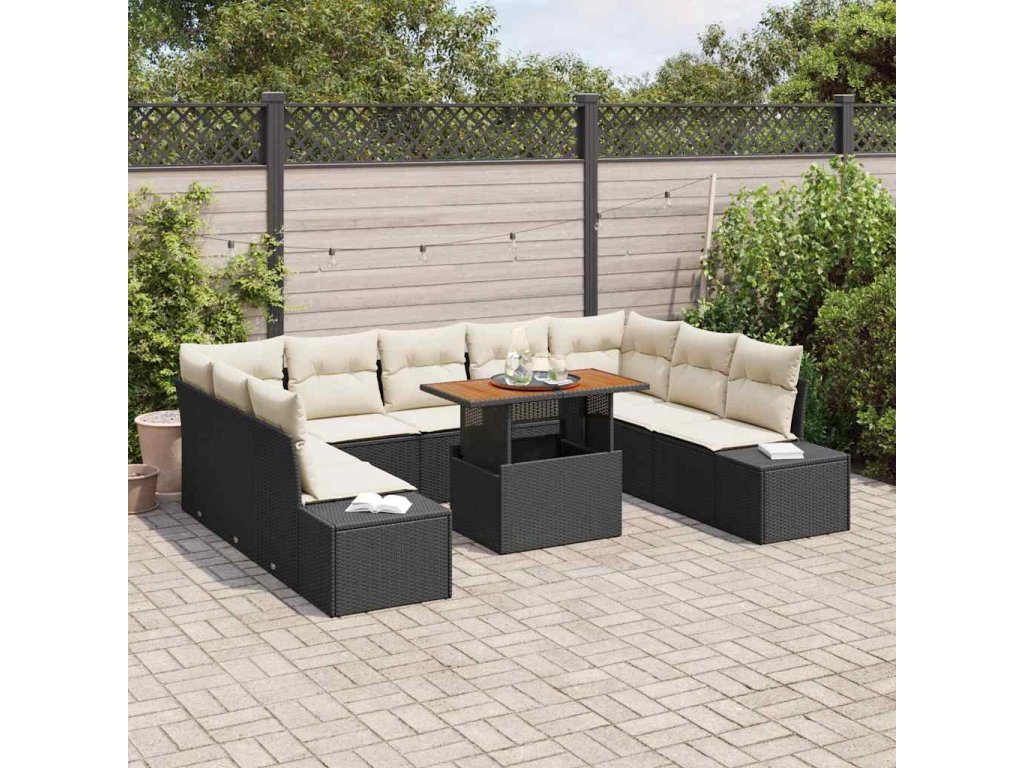 Multidom Záhradný jedálenský set s vankúšom 10 pcs Čierna a krémová