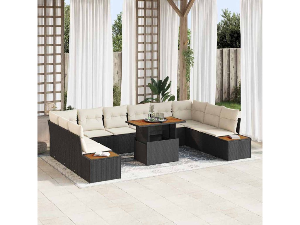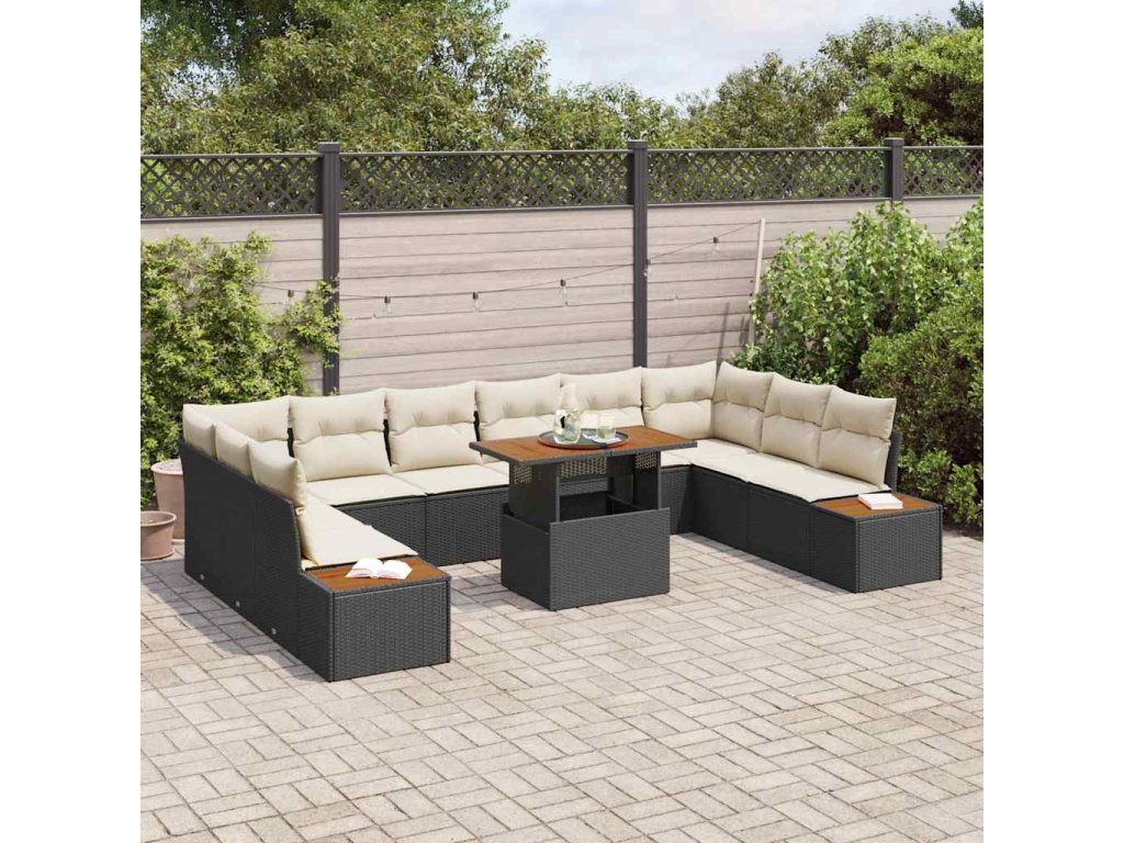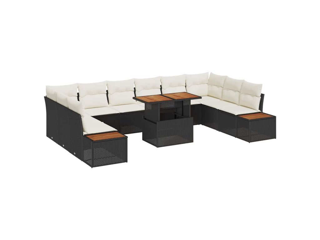 Multidom Záhradný jedálenský set s vankúšom 11 pcs Čierna a béžová