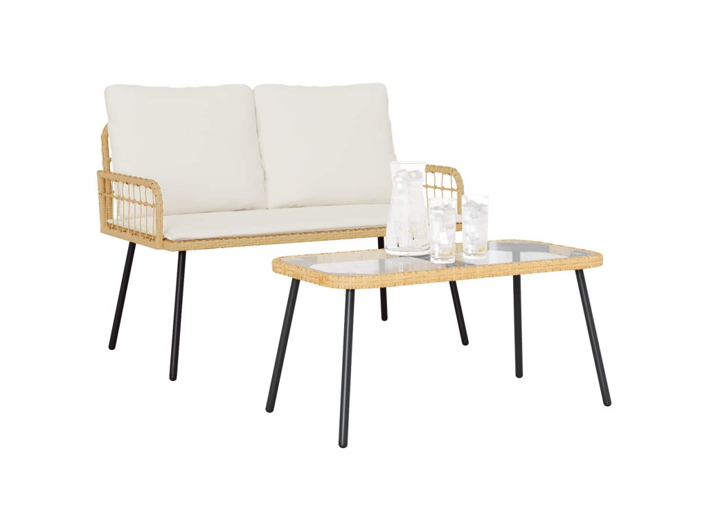 Multidom Záhradný jedálenský set s vankúšom 2 pcs Prírodná polyratan