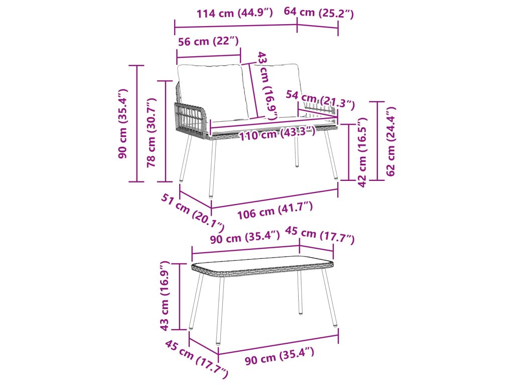 - Praktický dizajn: S premyslenými rozmermi táto súprava skvele doplní rôzne vonkajšie prostredia. Jej elegantné rozmery lavice a stola sú ideálne pre akýkoľvek priestor, či už máš malú terasu alebo veľkú záhradu.