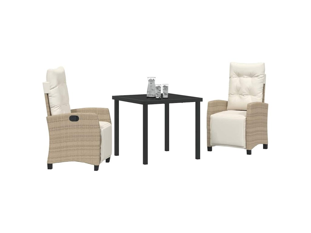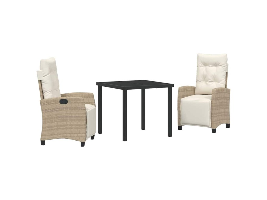 Multidom Záhradný jedálenský set s vankúšom 3 pcs Béžová polyratan