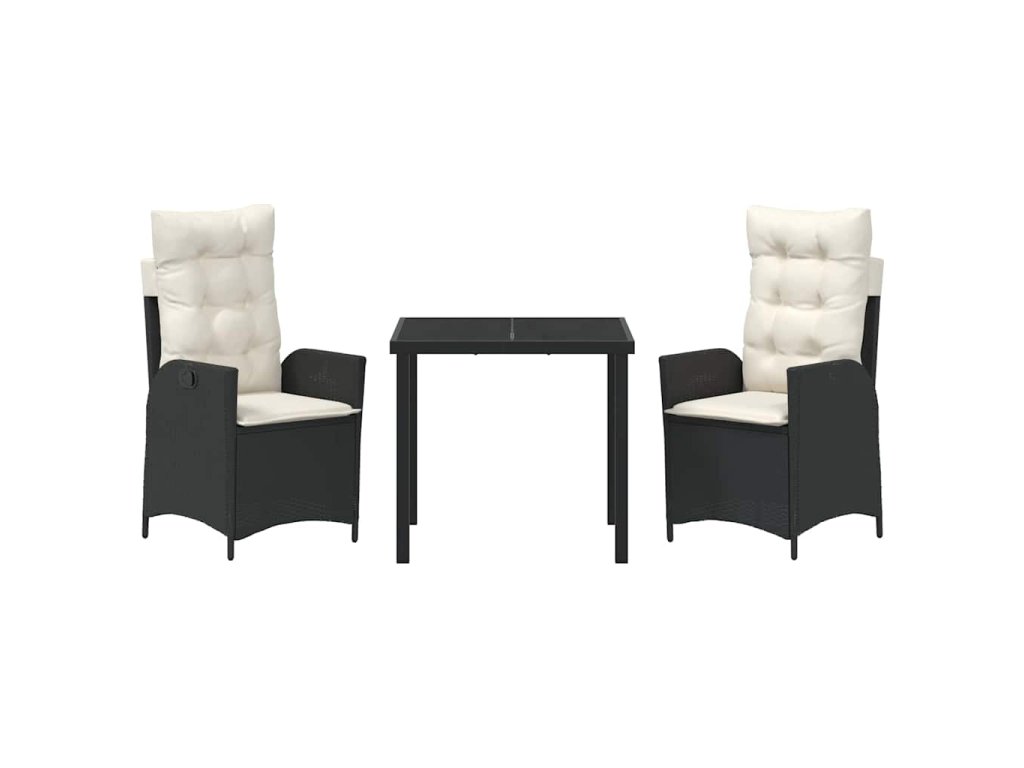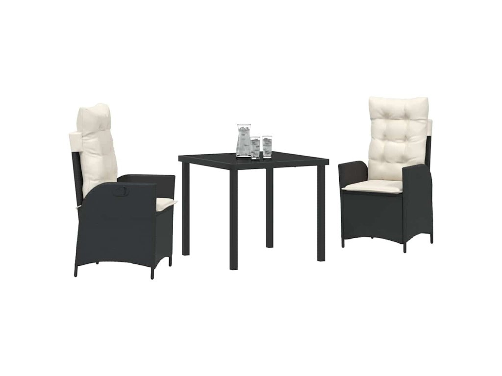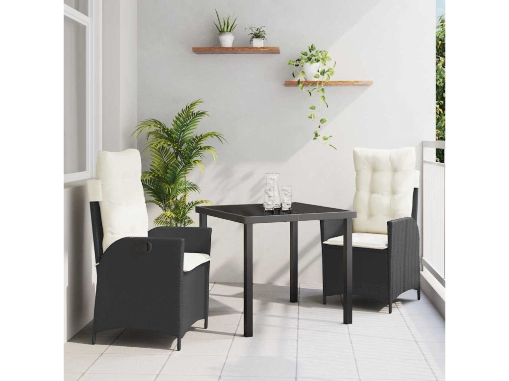 Multidom Záhradný jedálenský set s vankúšom 3 pcs Čierna polyratan