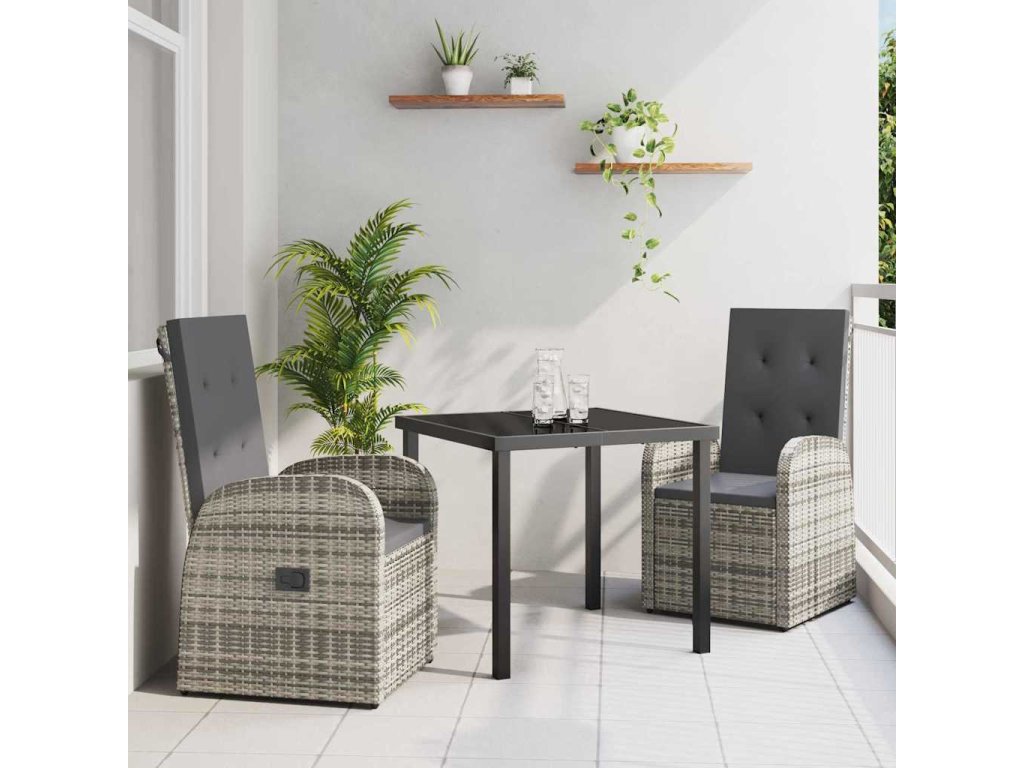 Multidom Záhradný jedálenský set s vankúšom 3 pcs Sivá polyratan