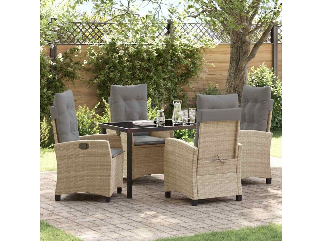 Multidom Záhradný jedálenský set s vankúšom 5 pcs Béžová polyratan