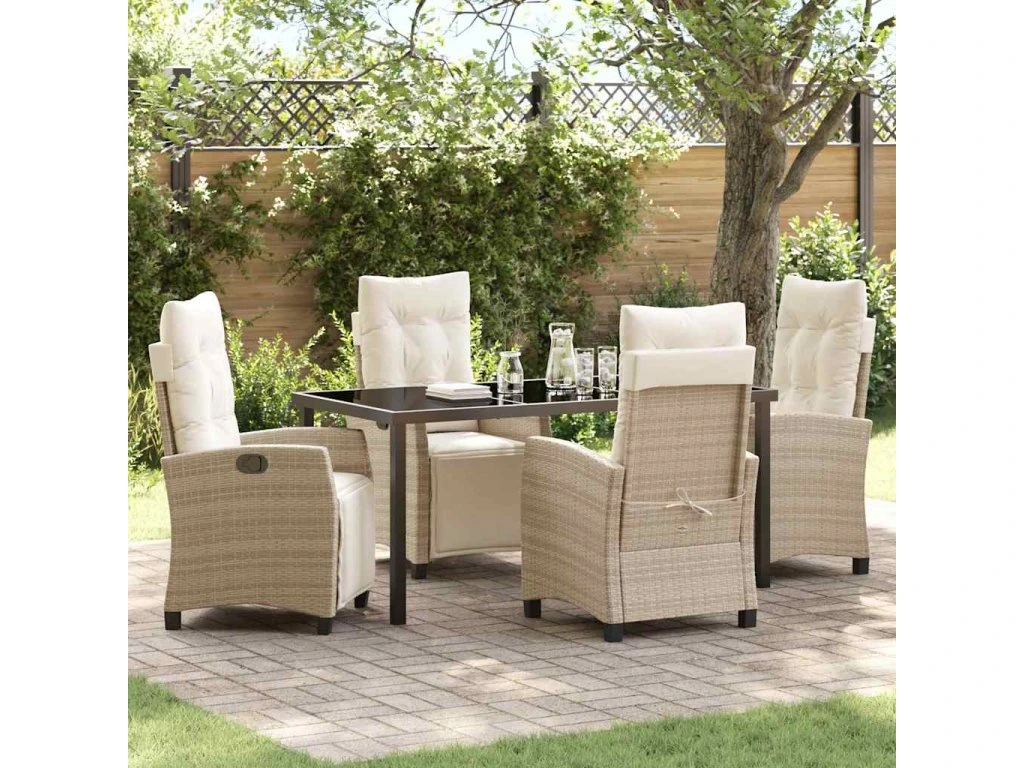 Multidom Záhradný jedálenský set s vankúšom 5 pcs Béžová polyratan