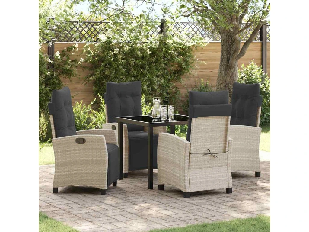 Multidom Záhradný jedálenský set s vankúšom 5 pcs Svetlosivá polyratan