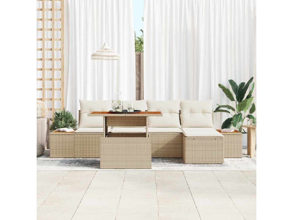 Multidom Záhradný jedálenský set s vankúšom 6 pcs Béžová a krémová