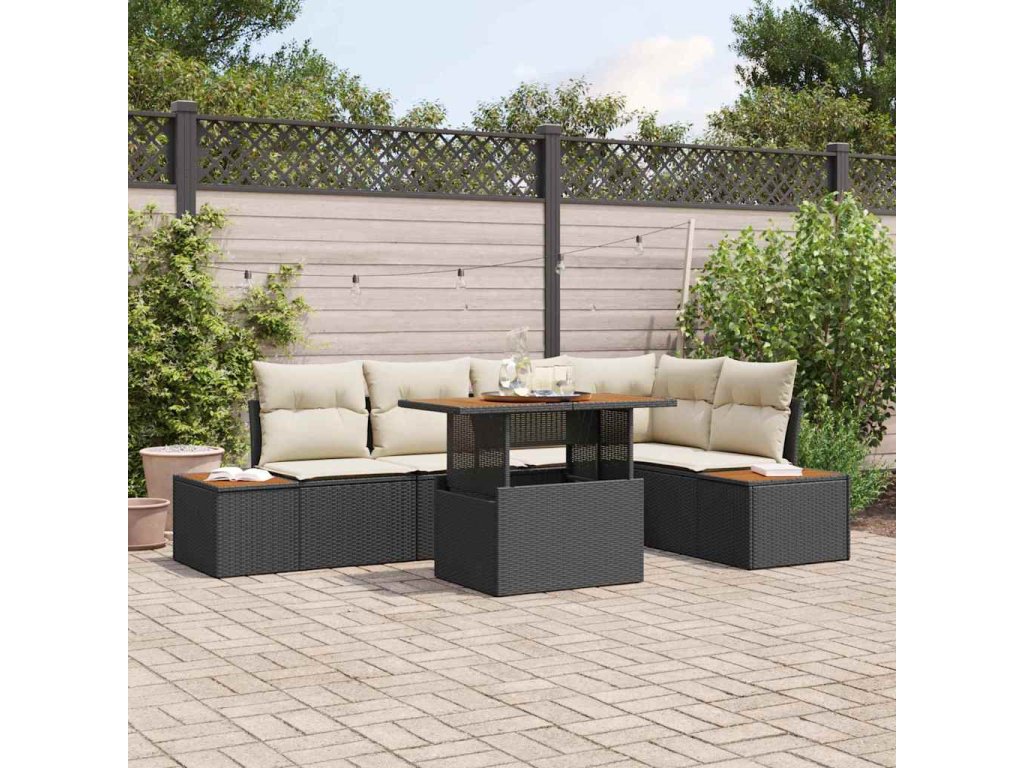 Multidom Záhradný jedálenský set s vankúšom 6 pcs Čierna a béžová