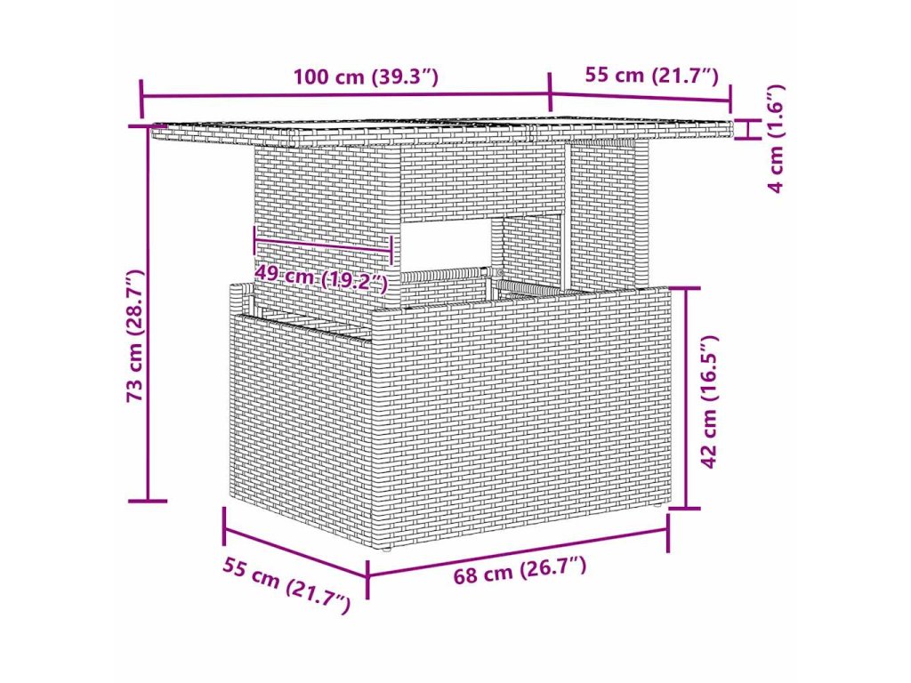 - Celkové rozmery: 100 x 55 x 73 cm (D x Š x V)
