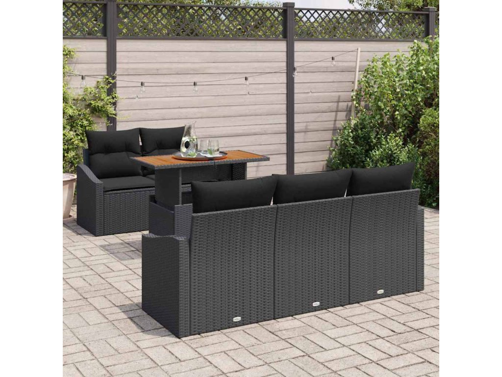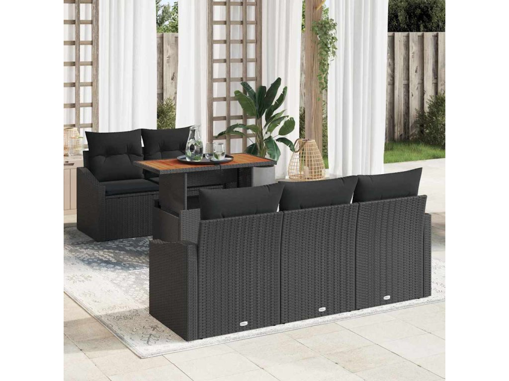 Multidom Záhradný jedálenský set s vankúšom 6 pcs Čierna a Hnedá