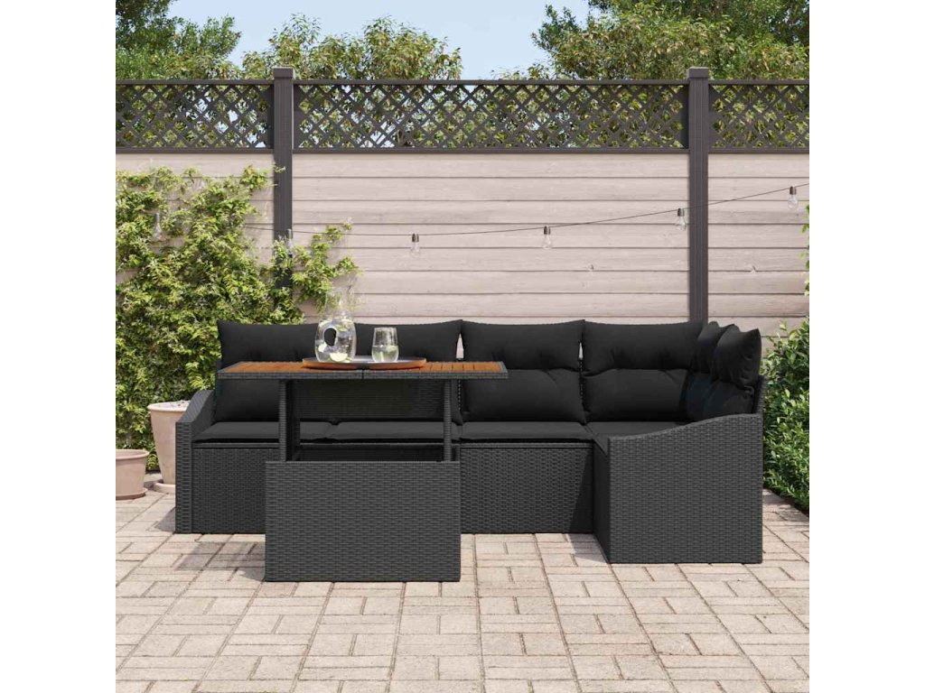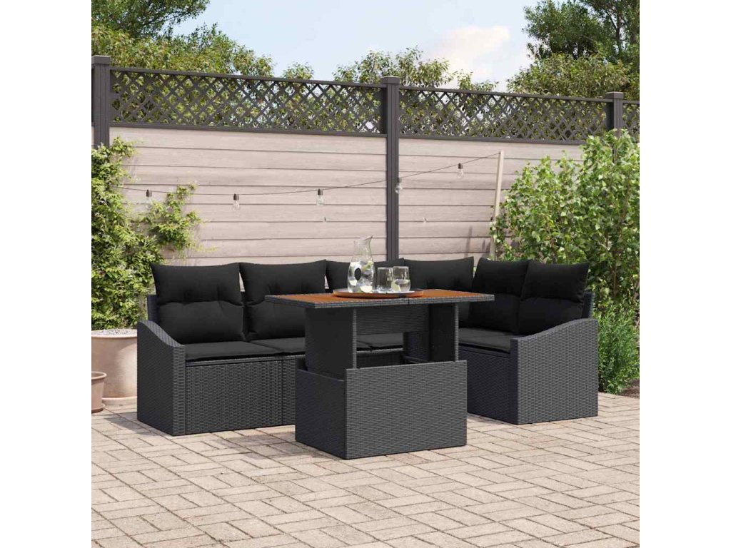 Multidom Záhradný jedálenský set s vankúšom 6 pcs Čierna a Hnedá
