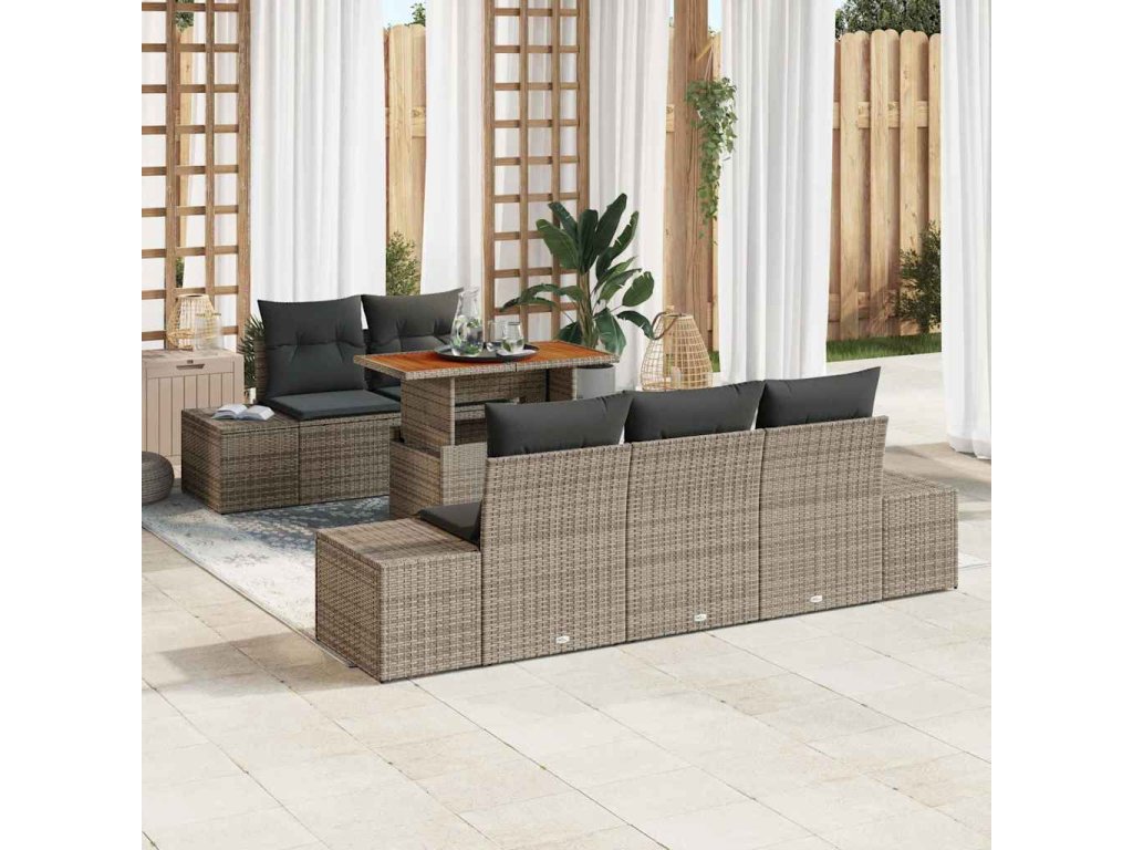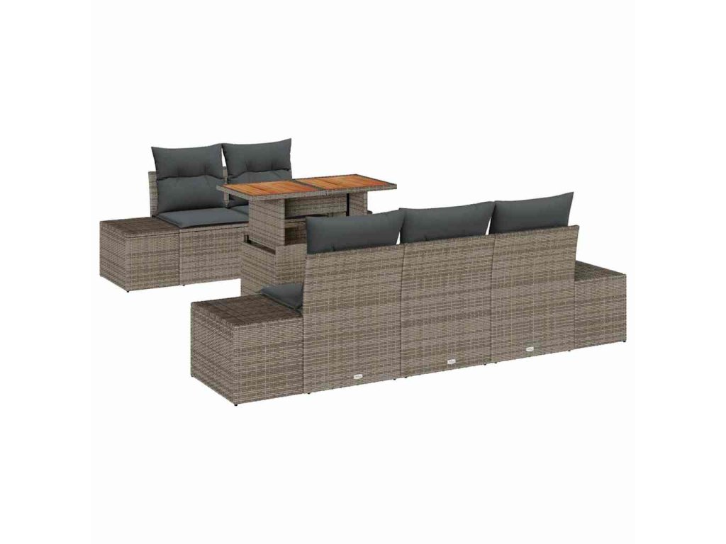 - Zahŕňa komponenty: Set obsahuje štyri bočné pohovky s integrovanými úložnými funkciami, jedno centrálnu sedačku, ktorá má tiež úložný priestor, a záhradný stôl. Navrhnuté tak, aby vyhovovalo rôznym potrebám, úložné komponenty poskytujú miesto pre essentials ako vankúše, obaly na sedačky alebo piknikové potreby. Tento zloženec predstavuje bezproblémovú funkčnosť na každodenné používanie.