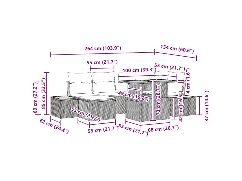 Tento vonkajší nábytkový set prináša svieži pohľad na modernú eleganciu so svojím jednoduchým dizajnom a flexibilným usporiadaním. Je perfektný pre záhrady a terasy, umožňuje ti ho usporiadať presne podľa tvojich predstáv, a robí z neho nevyhnutnú súčasť vonkajšieho života. Zameriava sa na pohodlie a funkčnosť, plný funkcií, ktoré splnia všetky potreby na relaxáciu. So štýlovým a praktickým dizajnom robí vonkajší čas príjemným, či už hostíš rodinnú oslavu alebo si len užívaš pokojnú večeru pod hviezdami. Predstav si, že si pohodlne usadený v mäkkých vankúšoch, chránený pred slnkom a vychutnávajúci si super vonkajšie vibes.
