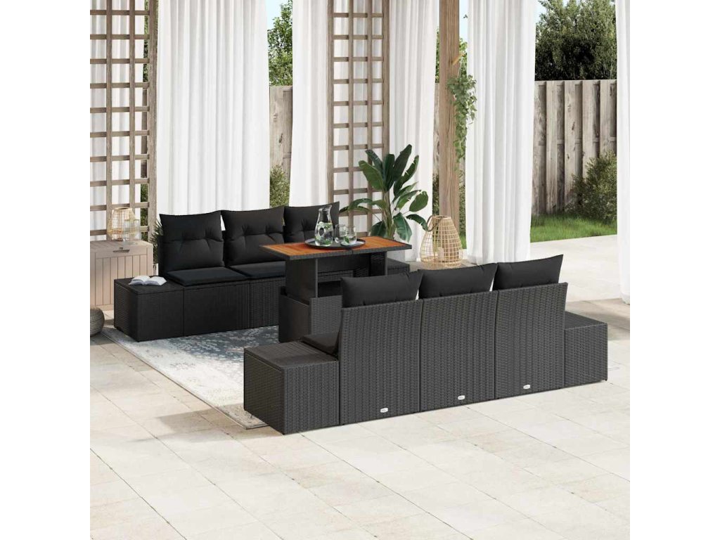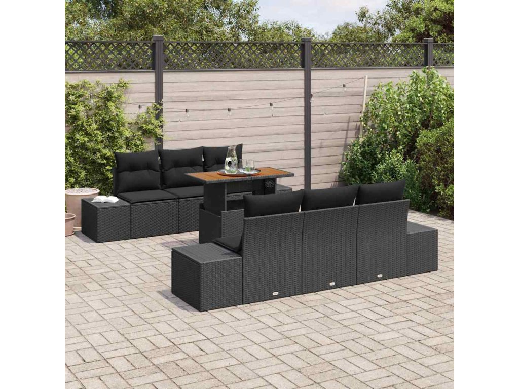 Multidom Záhradný jedálenský set s vankúšom 7 pcs Čierna a Hnedá