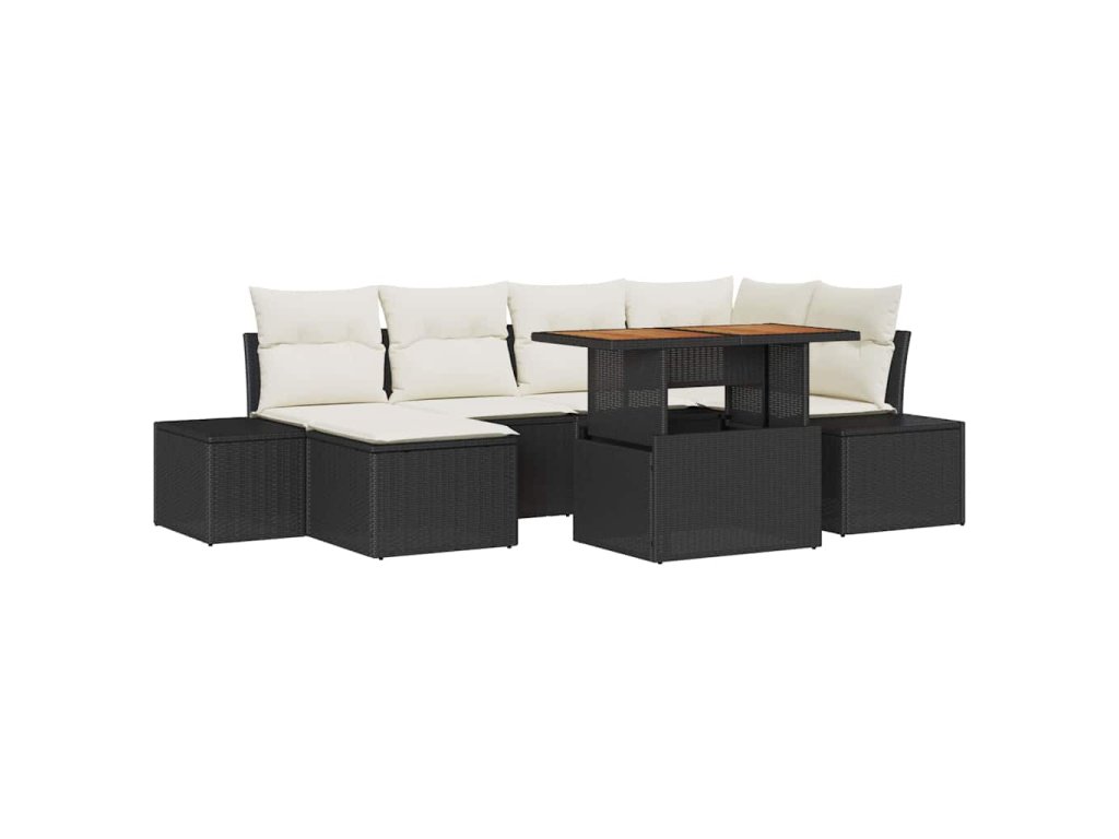 Multidom Záhradný jedálenský set s vankúšom 7 pcs Čierna a krémová