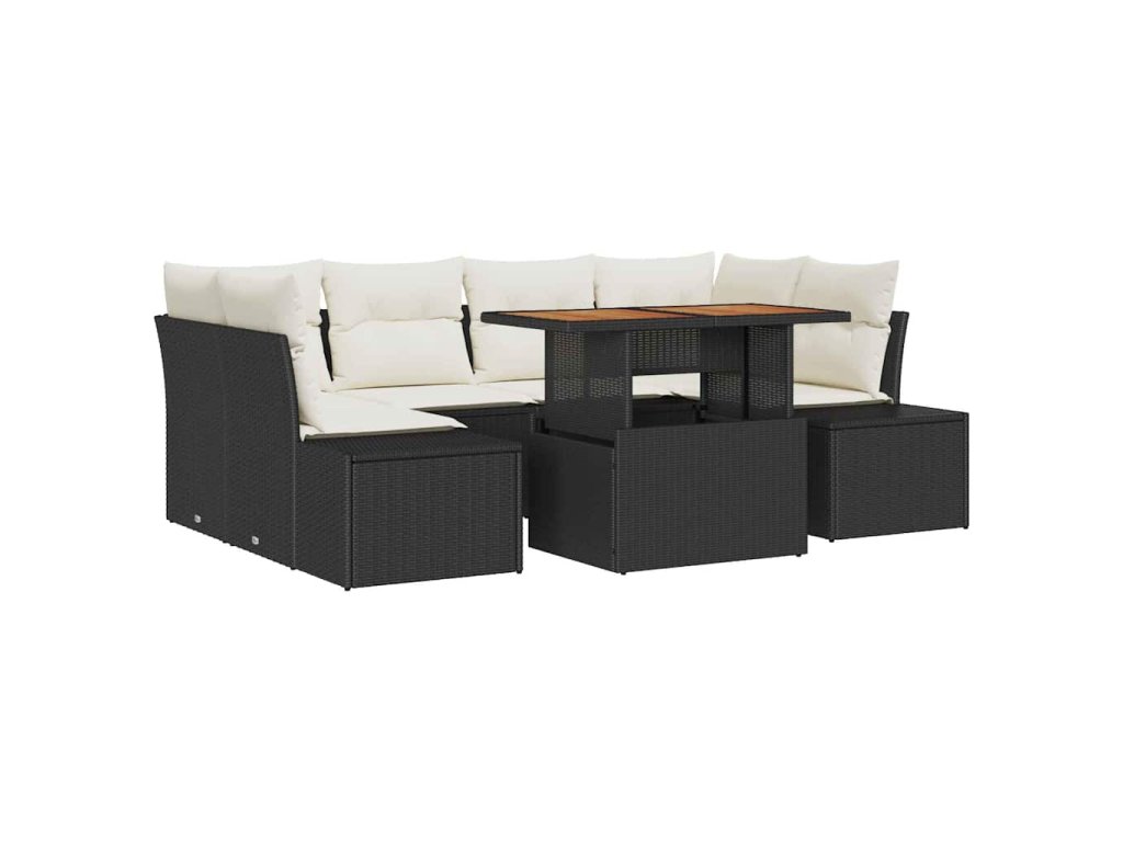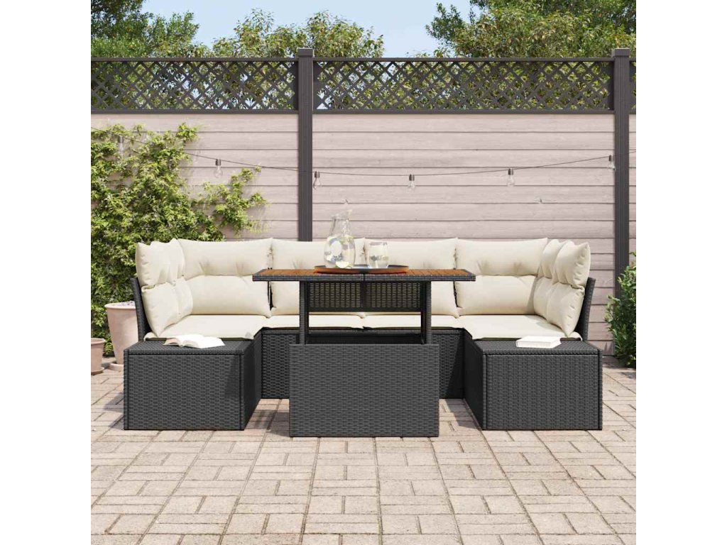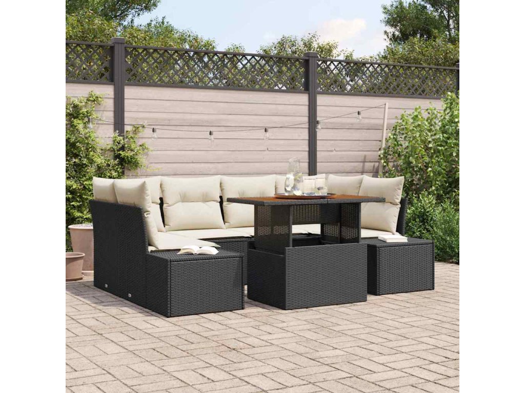 Multidom Záhradný jedálenský set s vankúšom 7 pcs Čierna a krémová