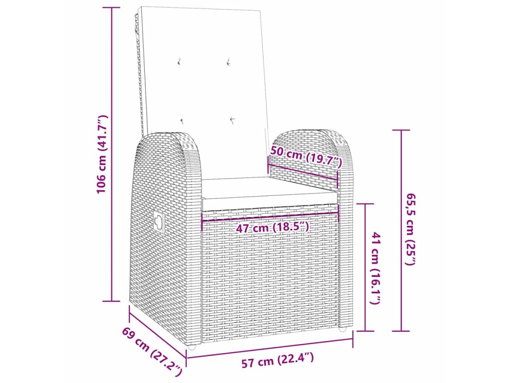 - 6 x záhradná stolička s opierkou na nohy: 57 x 69 x 106 cm (D x Š x V)