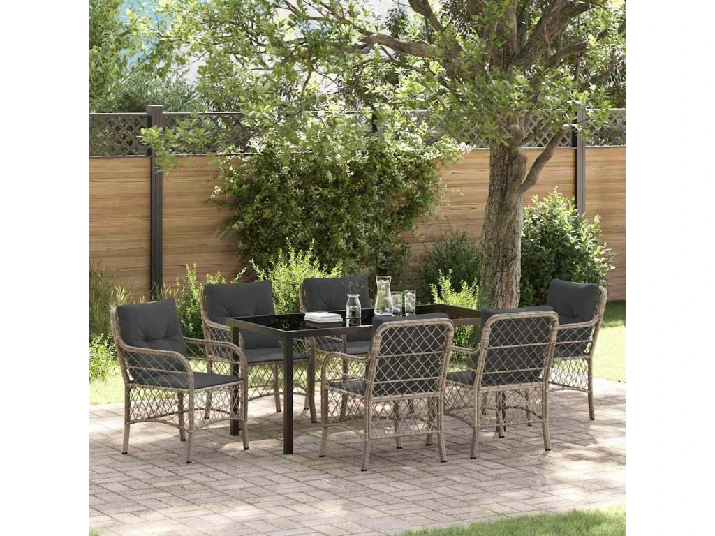 Multidom Záhradný jedálenský set s vankúšom 7 pcs Svetlosivá polyratan