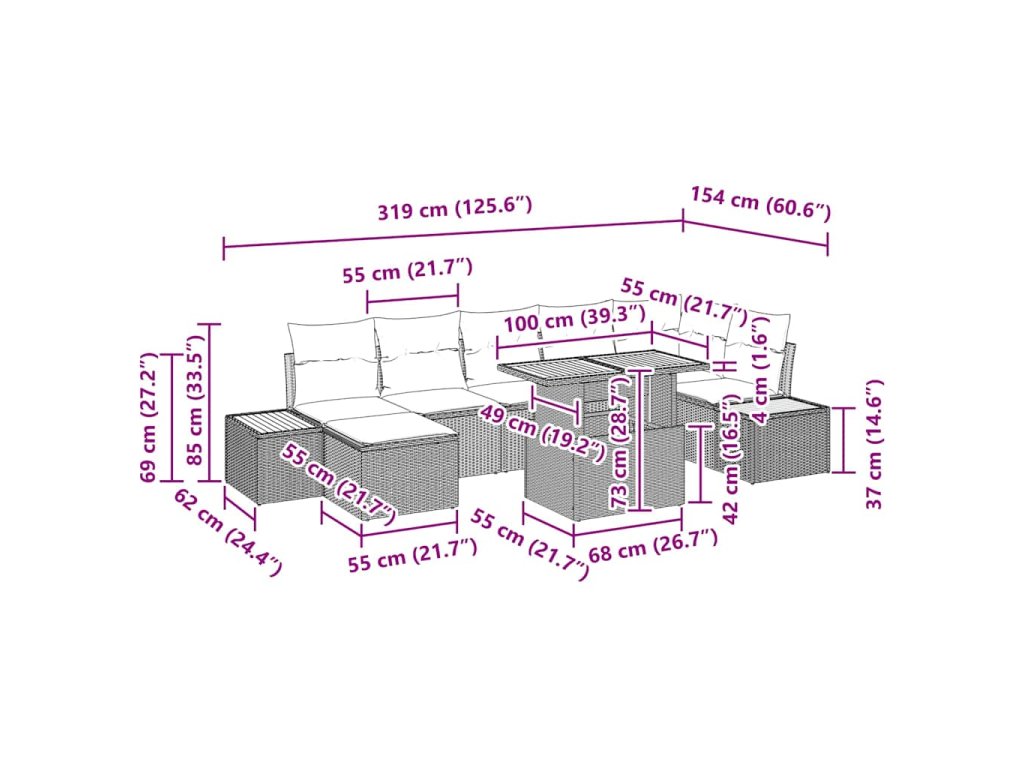 - Modulárna Versatilita Tento jedálenský set do záhrady je navrhnutý s modulárnou štruktúrou, čo umožňuje majiteľom prestavovať sedenie podľa veľkosti skupiny alebo rozloženia priestoru. Premeniť svoju záhradu na dynamické sociálne centrum s nekonečnými možnosťami konfigurácie. Každý modul dokonale zapadá, čím sa zaisťuje jednotný a štýlový vzhľad s flexibilitou funkčnosti.