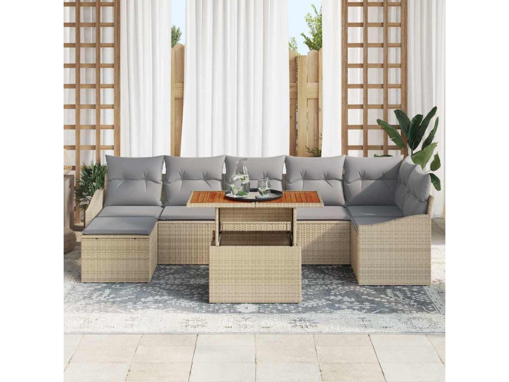 Multidom Záhradný jedálenský set s vankúšom 8 pcs Béžová a šedá