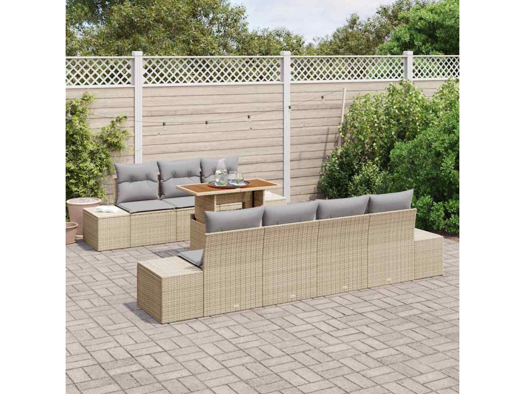 Multidom Záhradný jedálenský set s vankúšom 8 pcs Béžová a šedá