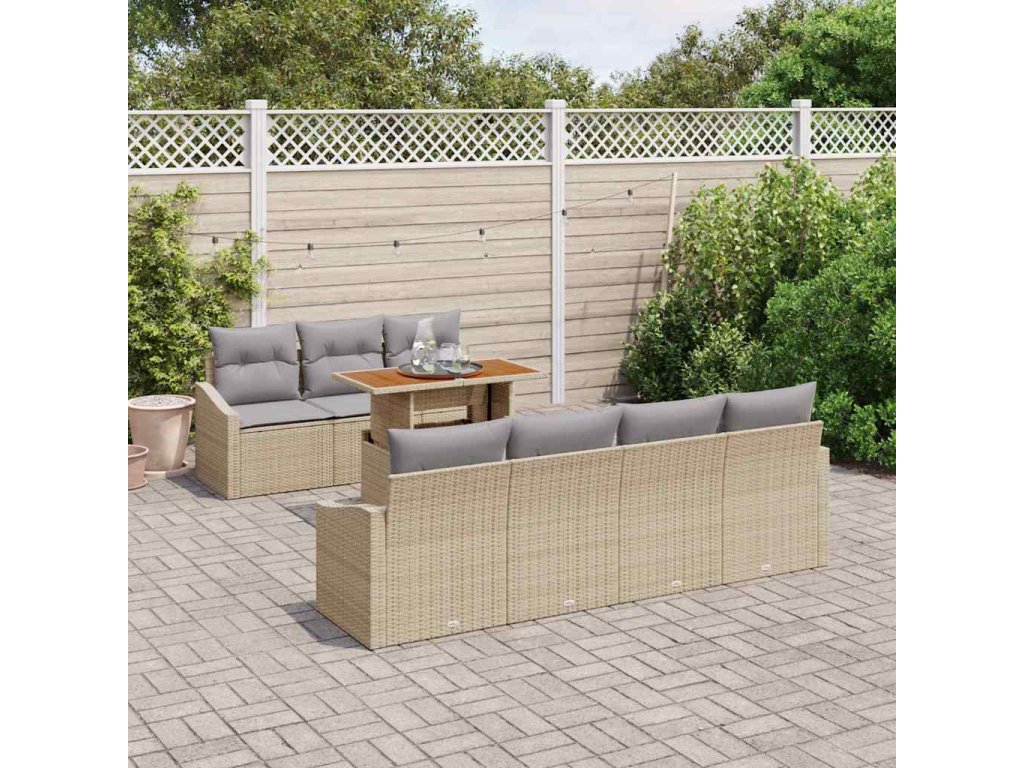 Multidom Záhradný jedálenský set s vankúšom 8 pcs Béžová a šedá
