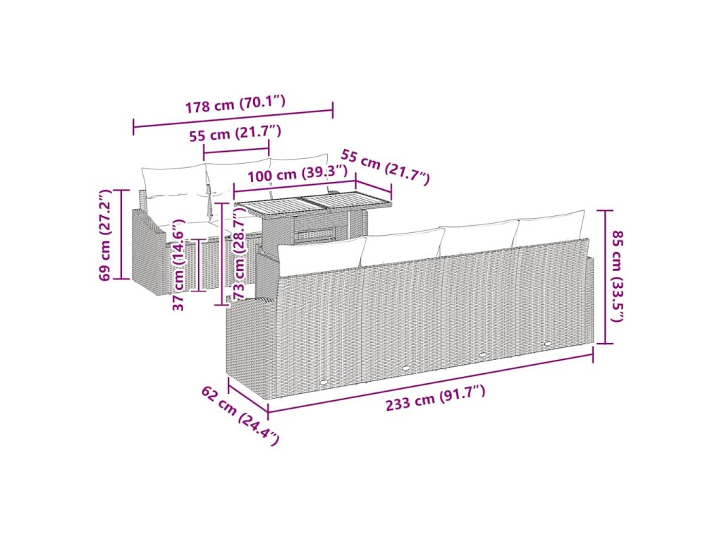 - Pohodlie bez námahy: S odnímateľnými sedacími vankúšmi z polyesteru s penovým plnením táto súprava zabezpečuje dlhodobé pohodlie. Vankúše sú navrhnuté na jednoduché odstránenie so zipsom, čo uľahčuje údržbu alebo sezónne aktualizácie.