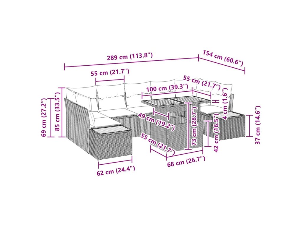 - Premyslené súčasti: Set obsahuje sedacie podsedáky navrhnuté pre menšie polstrovanie a pohodlie, plus vankúše vyplnené penou pre zabezpečenie relaxácie. Odnímateľné obaly so zipsami na vankúšoch znamenajú jednoduché čistenie. Flexibilný úložný priestor v každej sedacej jednotke udržuje vonkajšie nevyhnutnosti na dosah.