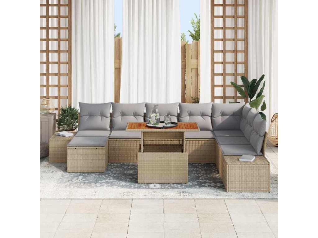 Multidom Záhradný jedálenský set s vankúšom 9 pcs Béžová a šedá