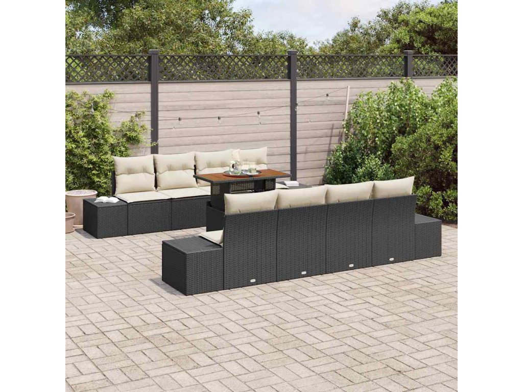 Multidom Záhradný jedálenský set s vankúšom 9 pcs Čierna a krémová