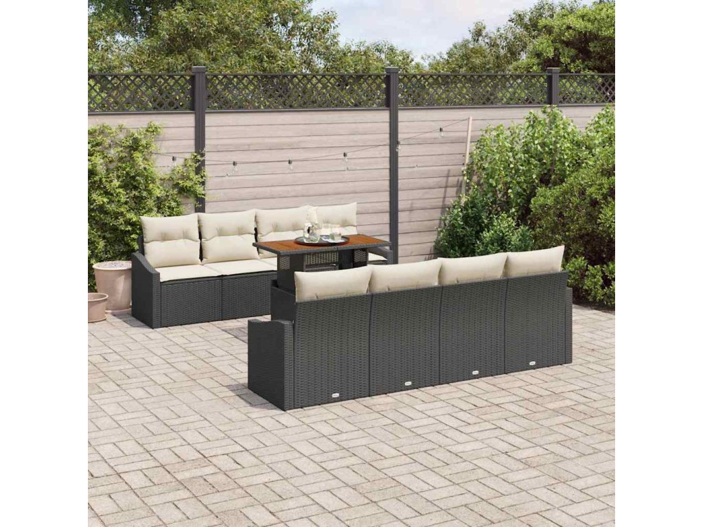 Multidom Záhradný jedálenský set s vankúšom 9 pcs Čierna a krémová