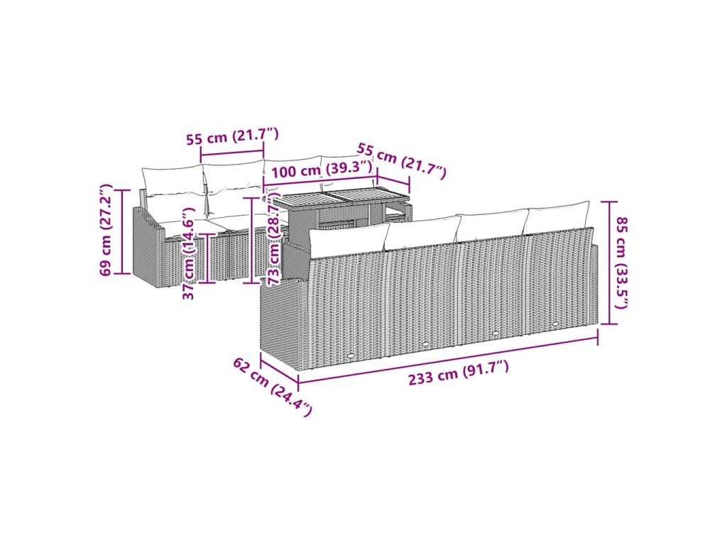 - Premyslené komponenty: Sada vybavená záhradným stolom a kompletným sedením zahŕňa ramená a centrálnych pohovky s úložnými funkciami a sprievodnými sedacími vankúšmi s odnímateľnými povlakmi. Táto zostava podporuje bezproblémovú organizáciu a pohodlie, pretransformujúc jednoduché stretnutia na nezabudnuteľné udalosti.