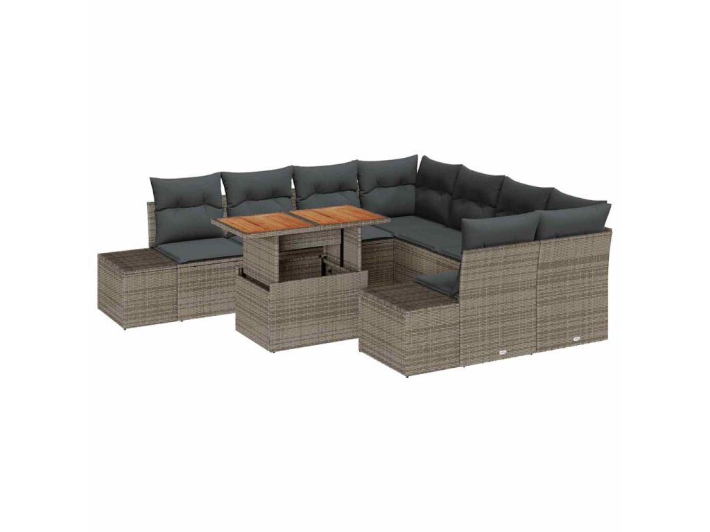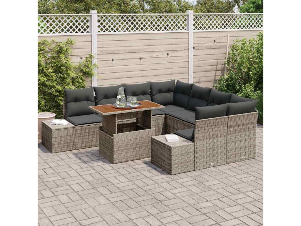 Multidom Záhradný jedálenský set s vankúšom 9 pcs Sivá a hnedá