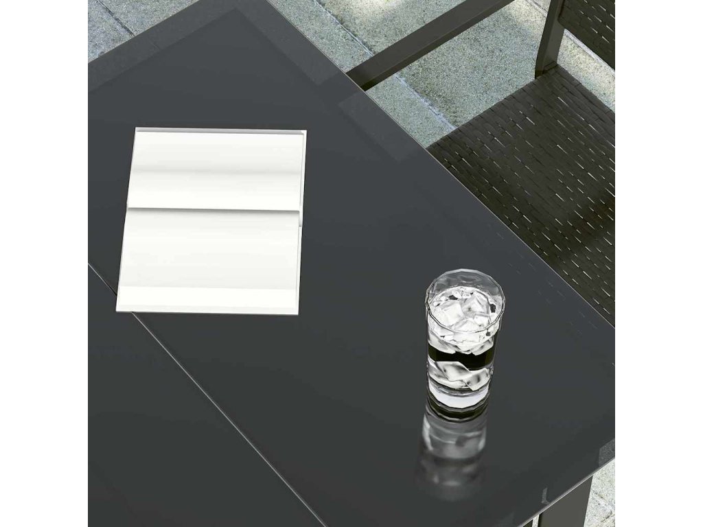 Tento minimalistický jedálenský stôl z ocele a skla bude klasickým doplnkom vašej záhrady, balkóna a terasy.