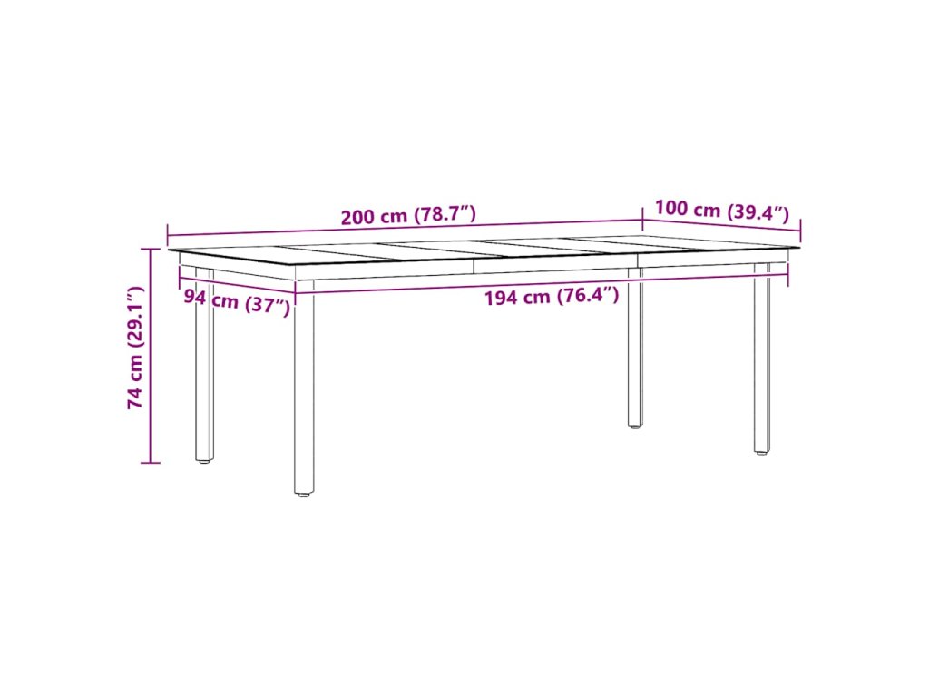 - Rozmery: 200 x 100 x 74 cm (D x Š x V)