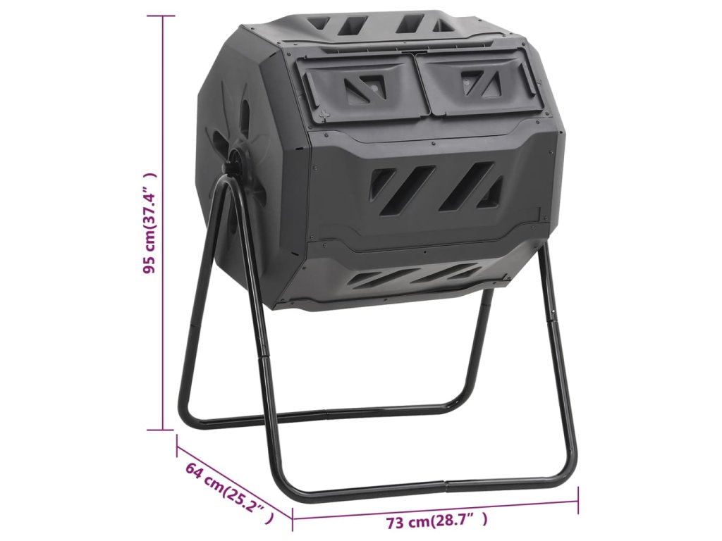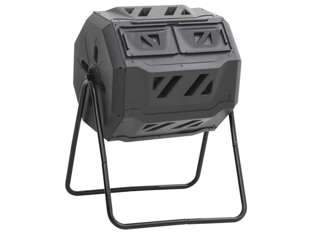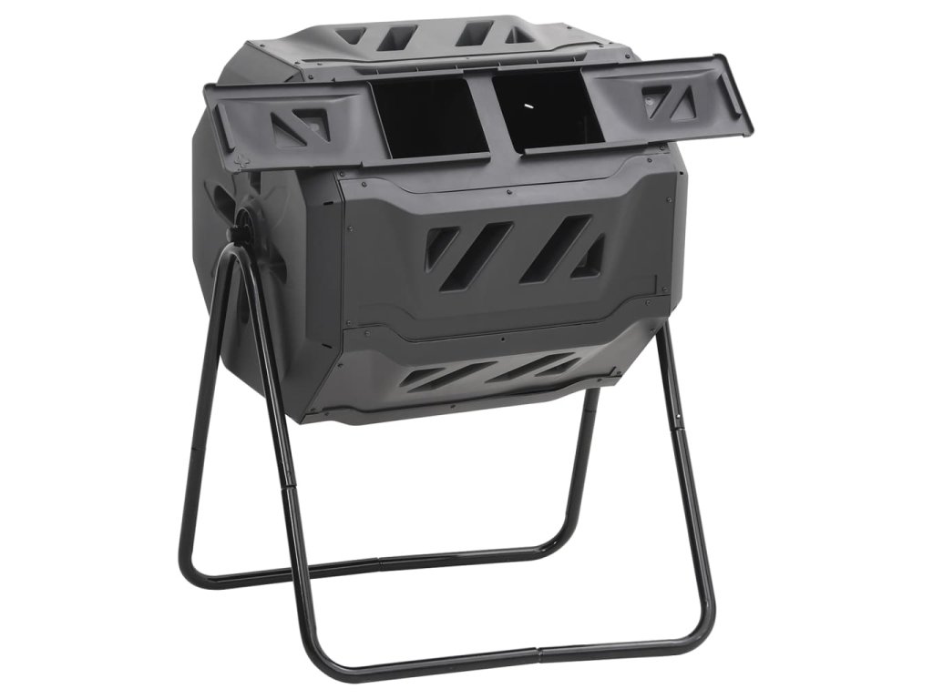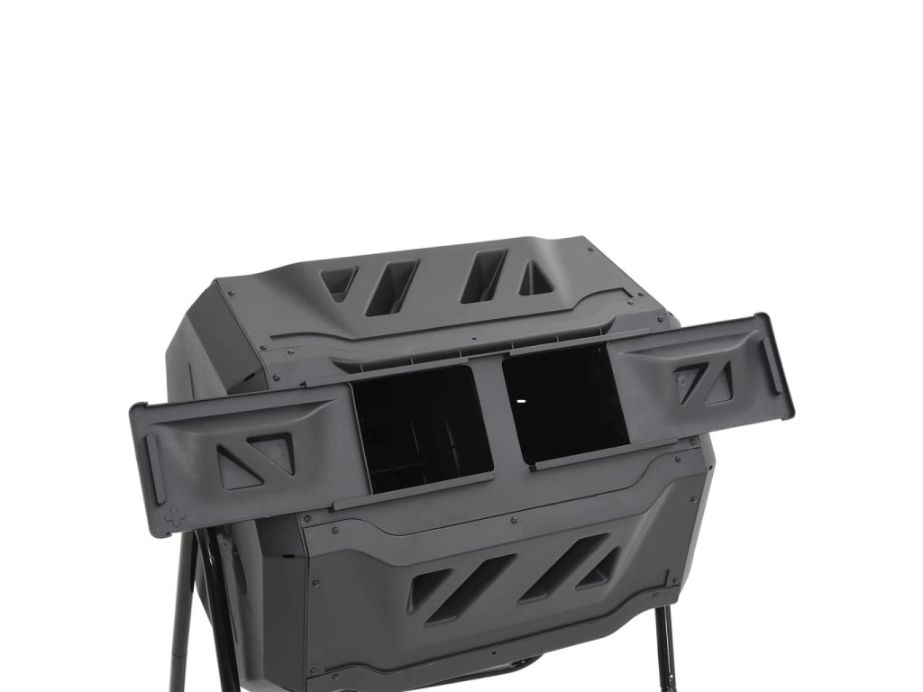 - Praktický dizajn: Kompostér s dvoma oddelenými komorami je veľmi praktický. Kým na jednej strane už dochádza k rozkladu, na druhej strane je možné dopĺňať nový materiál.