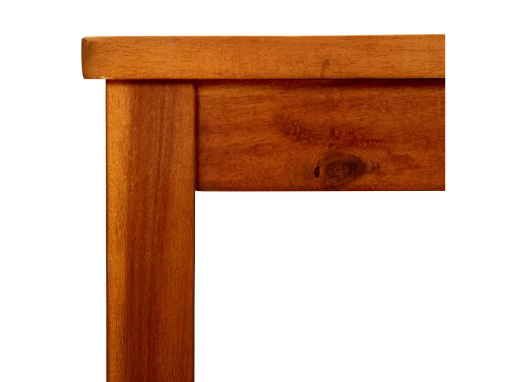 Tento stôl je vyrobený z akáciového masívu s povrchovou úpravou prírodným olejom, je odolný voči poveternostným vplyvom a trvácny. Každý krok výrobného procesu sa vykonáva s najväčšou starostlivosťou, či už ide o leštenie alebo lakovanie. Pevná stolová doska s roštovým dizajnom vám ponúka priestor na umiestnenie občerstvenia, ovocných košov, ozdobných predmetov a ďalších potrieb.