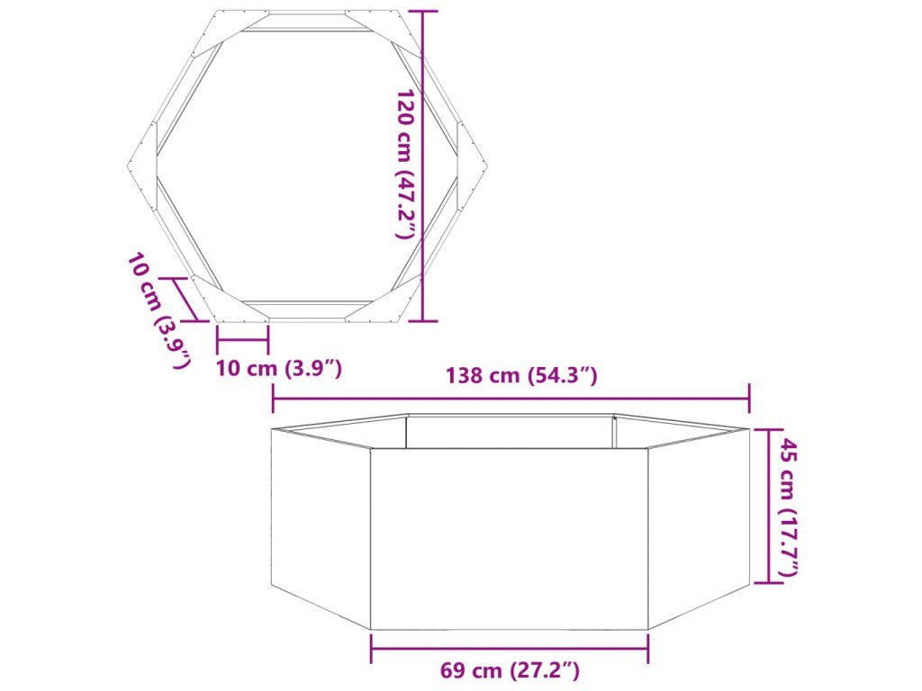 Multidom Záhradný kvetináč, olivovo zelený, šesťhran 138x120x45 cm, oceľ