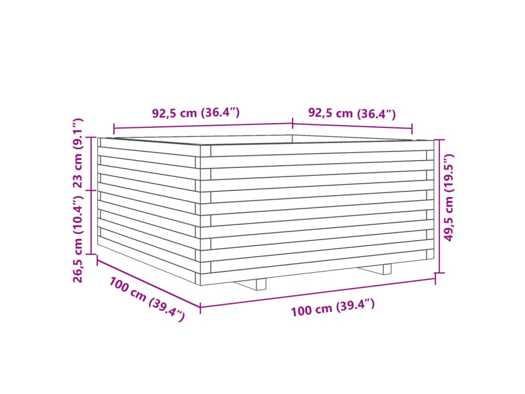 Multidom Záhradný kvetináč biely 100x100x49,5 cm borovicový masív