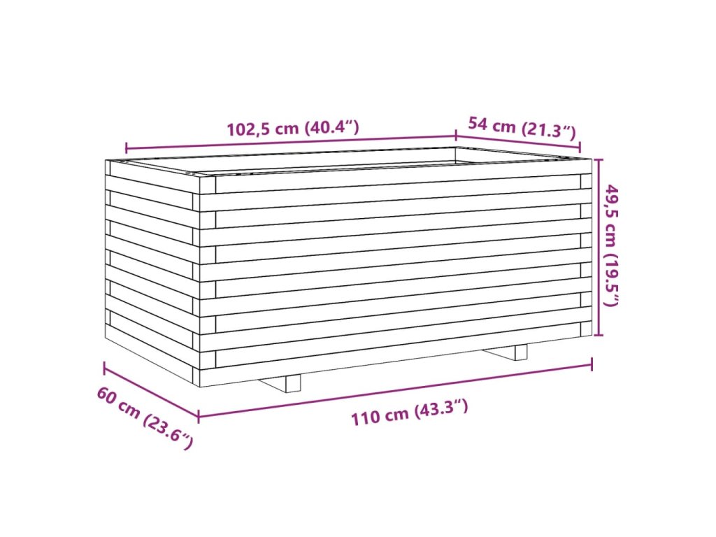 Multidom Záhradný kvetináč biely 110x60x49,5 cm borovicový masív