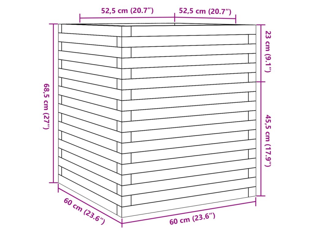 Multidom Záhradný kvetináč biely 60x60x68,5 cm masívna borovica