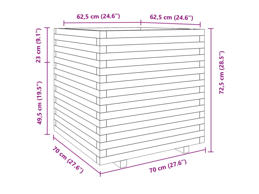 Multidom Záhradný kvetináč biely 70x70x72,5 cm borovicový masív