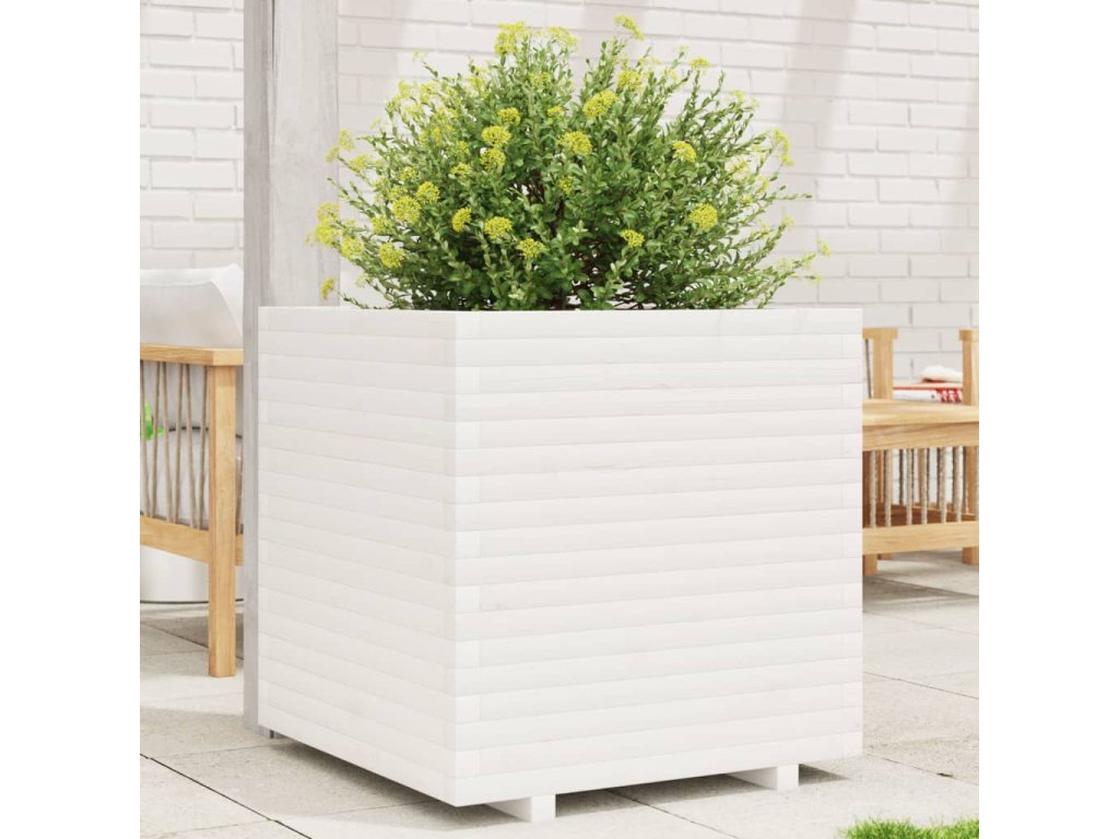 Multidom Záhradný kvetináč biely 70x70x72 cm borovicový masív