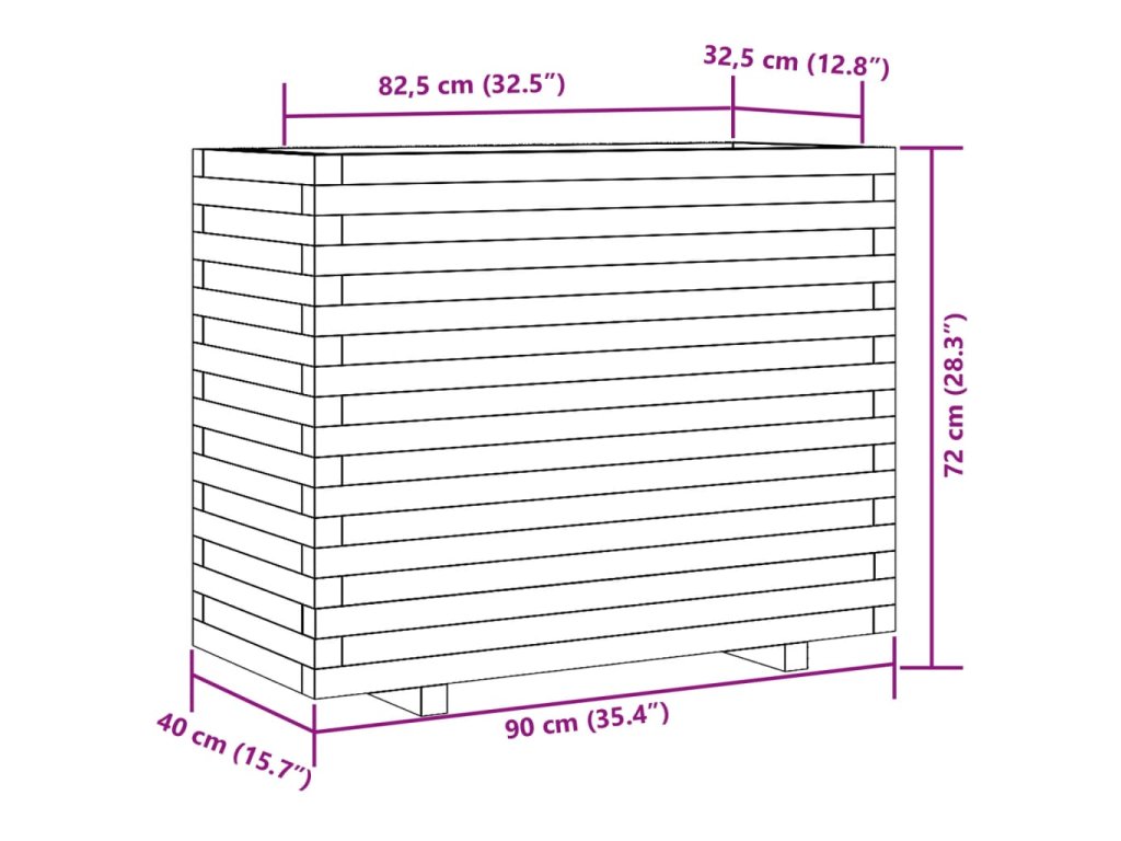 Multidom Záhradný kvetináč biely 90x40x72 cm borovicový masív