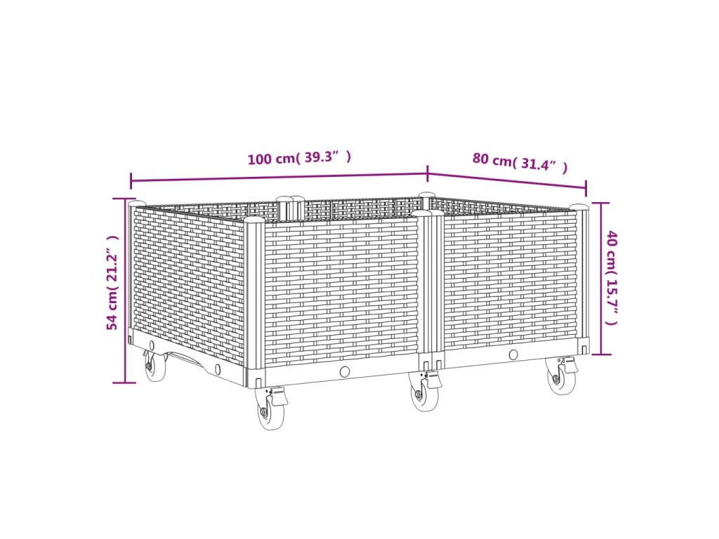 - Jednoduché presúvanie: Tento kvetináč má 4 kolieska, vďaka čomu sa dá ľahko presúvať. Dve z koliesok majú brzdy, ktoré ho v prípade potreby udržia na mieste.