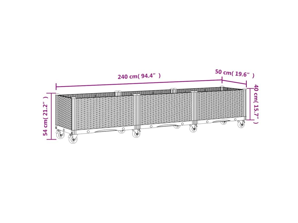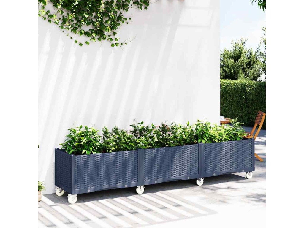 Multidom Záhradný kvetináč s kolieskami modrosivý 240x50x54 cm PP