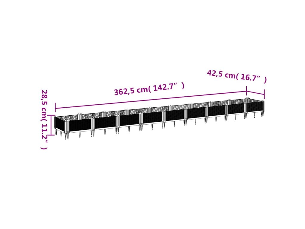 Multidom Záhradný kvetináč s kolíkmi modrosivý 362,5x42,5x28,5 cm PP