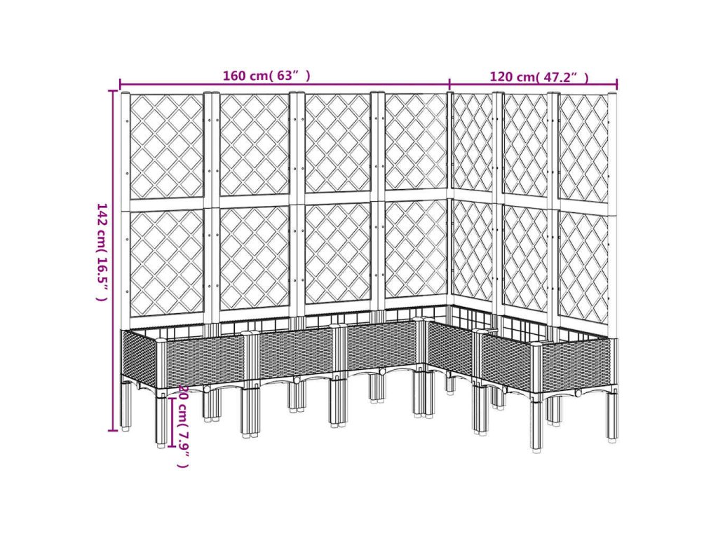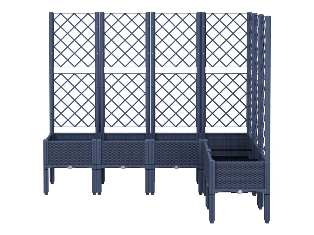 - Praktický dizajn: Ideálna spodná vrstva pomáha zadržiavať vlhkosť a umožňuje odtok vody. Integrovaná mriežka tiež ponúka skvelú podporu pre pestovanie popínavých rastlín, ako sú paradajky, hrach a ruže.